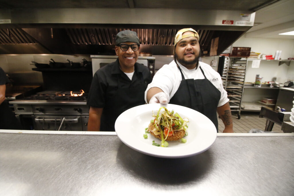 Through Cooking for Change, Moultrie hires young, non-violent offenders at his restaurant, pays them a living wage and provides uniforms, slip-resistant shoes and cooking utensils. The organization can also provide stipends for gas money or ride-sharing services so they can get to work. They learn basic food and culinary techniques through on-the-job training, working alongside Moultrie and the rest of the staff, as well as ServSafe food handling, CPR and first aid certification through Ivy Tech Community College.