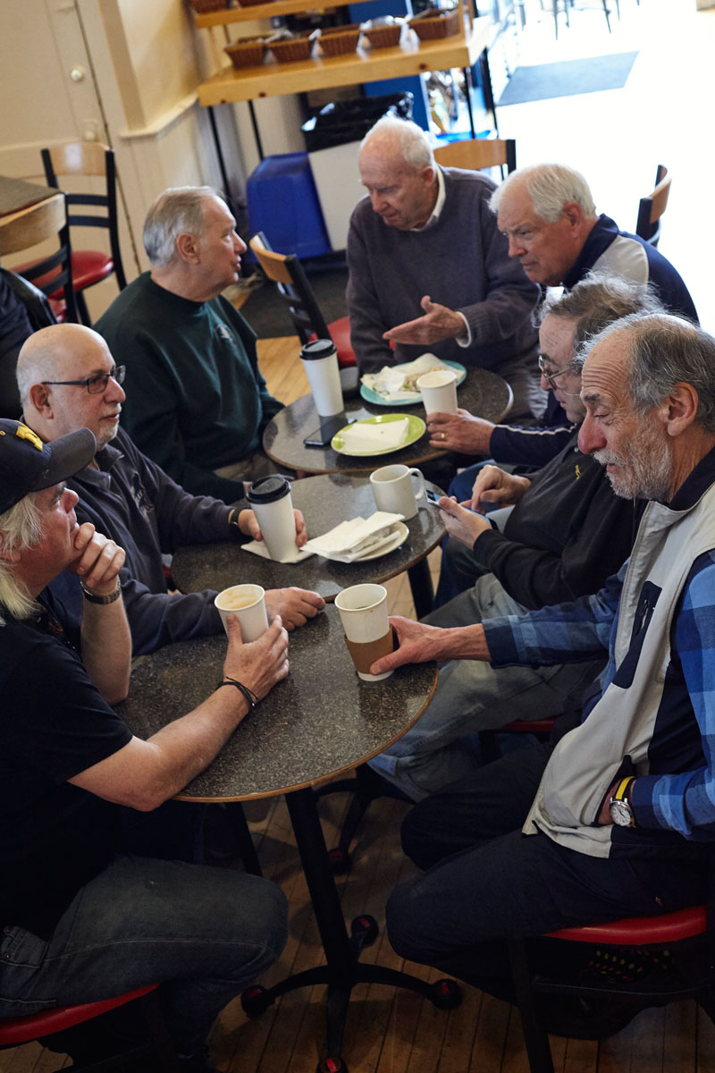 Coffee shops often are places where people meet, but David’s goes beyond that. Every morning there’s a crew of more mature bachelors who meet up for a coffee and some of Emma’s delicious pastries. You can also find a weekly group of cyclists, braking at their halfway point and wetting their whistles on some finely tuned espressos. Wednesday afternoons the back room is filled with a group of knitters who catch up and visit. It’s a place where city officials and local business owners hold meetings. A place where someone who works from home brings her laptop and sets up on a high top for a reuben and emailing. Where local homeschoolers prep for a project or trade magic cards.