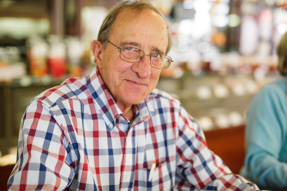 A few years ago, I approached Kare Anderson, who represents the fourth generation of Olympia owners, about doing a photo project of the people I saw frequently there. He directed me to my first regular, Tom Kintigh, who said, “My first time I came in was in 1942 as a sophomore in high school. Of course, I missed out when I was in the service. Came back in ’46.”