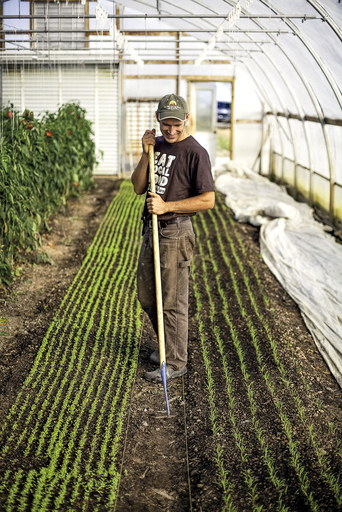 Following Brenneman’s lead, Hartman and Hershberger began with simple strategies like storing tools where they are actually used instead of in a central storage area. But before long the couple found themselves reevaluating almost every aspect of life at Clay Bottom with the goal of maximizing their use of “right size” technology—from the weight of their hoes (a lighter, more ergonomic tool makes for lighter work) to the structure of their harvest, packing and cleanup routines.