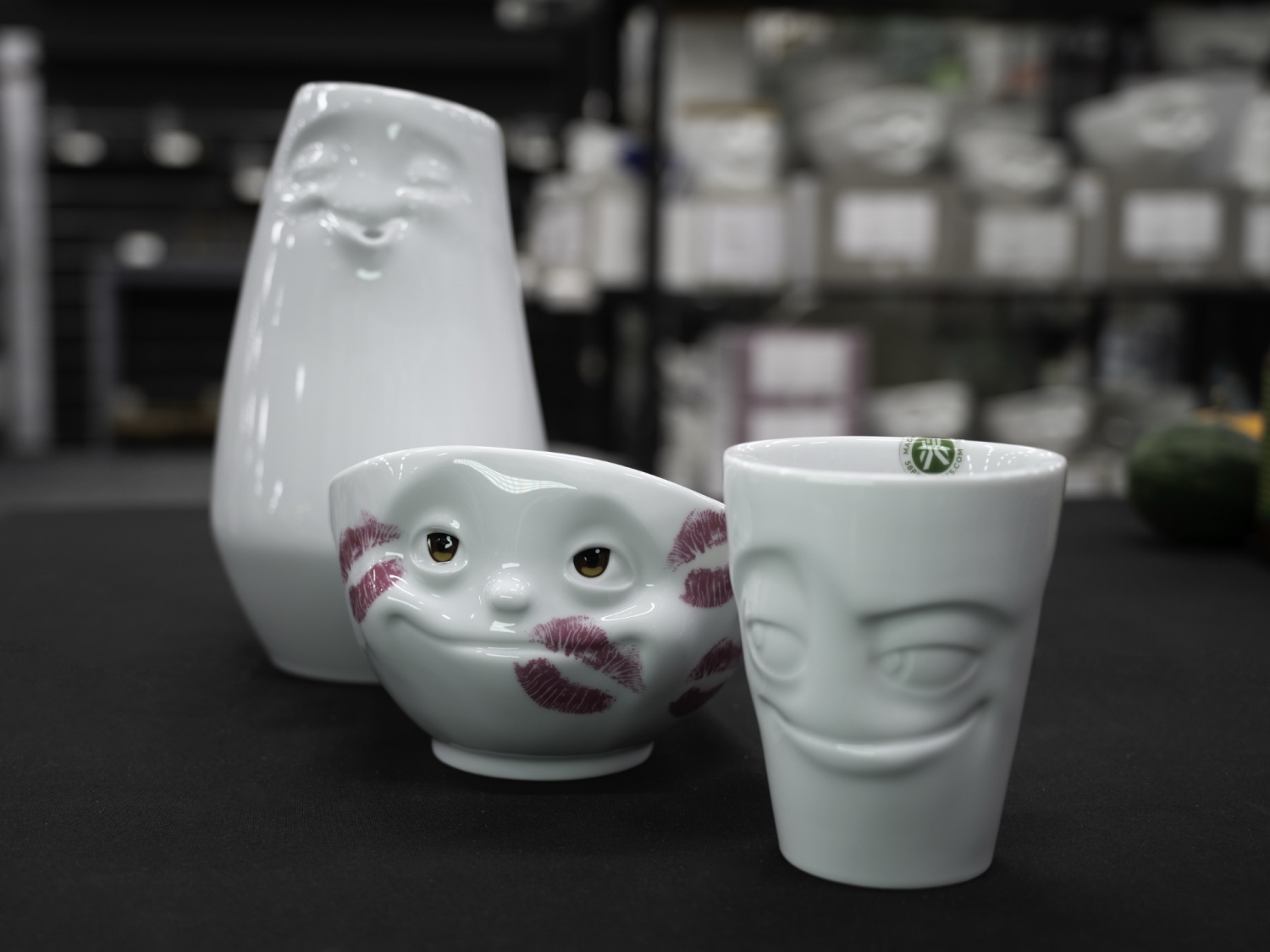 These cereal bowls, coffee cups, flower vases and more each have their own personality. German-made, each is designed with its own silly or serious expressive face.