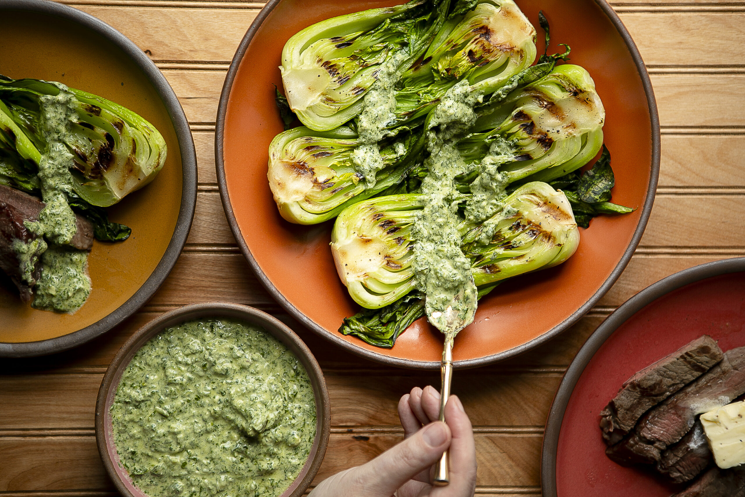 Grilled Bok Choy with Creamy Chimichurri